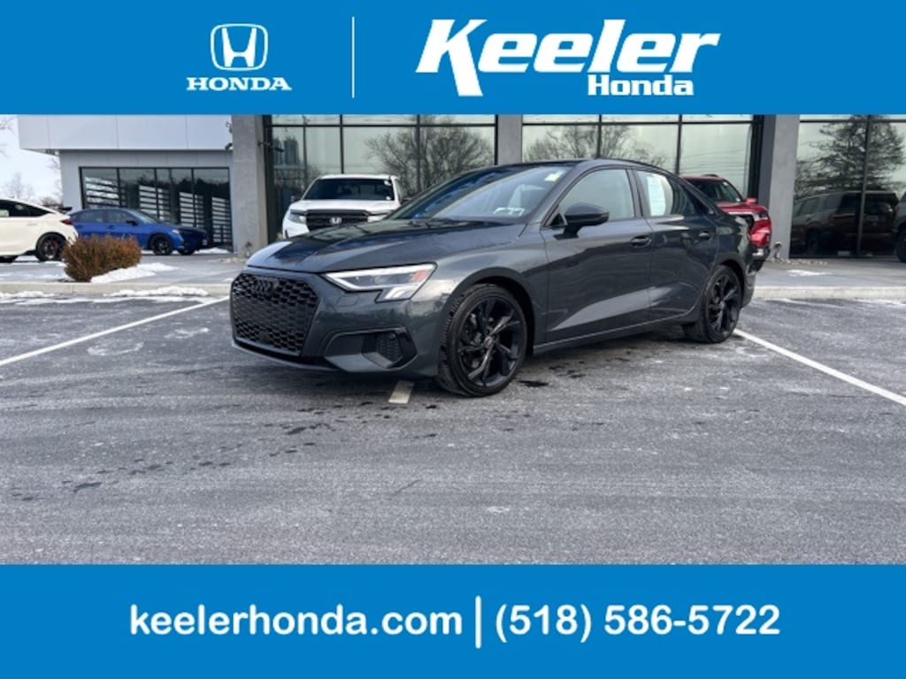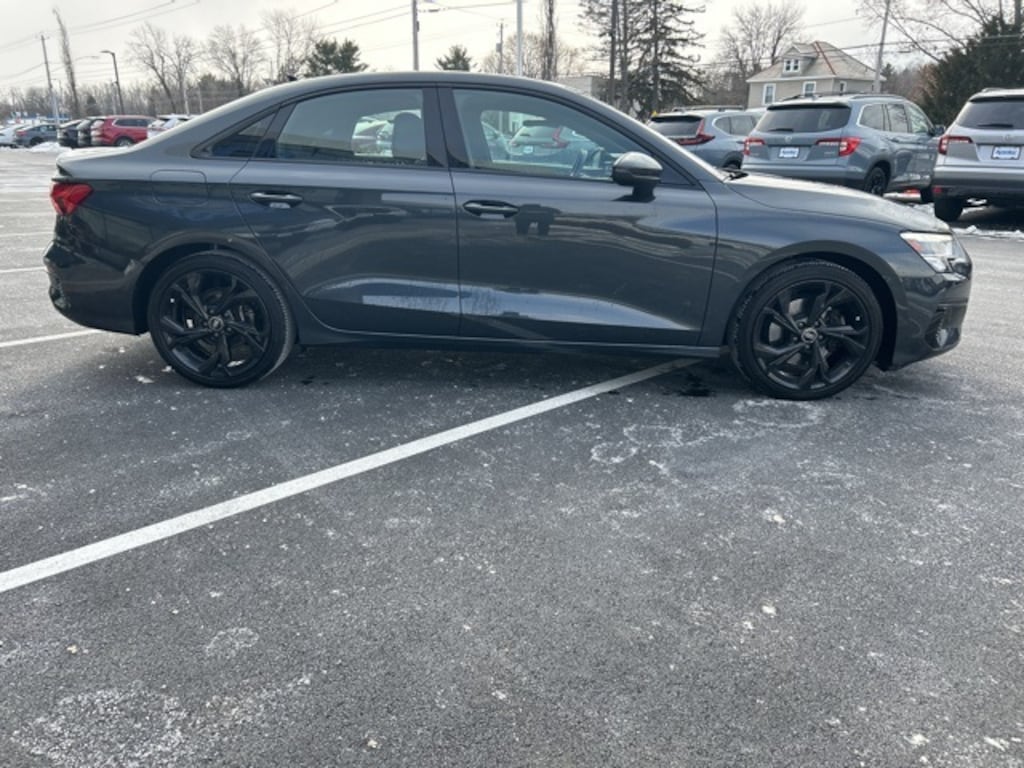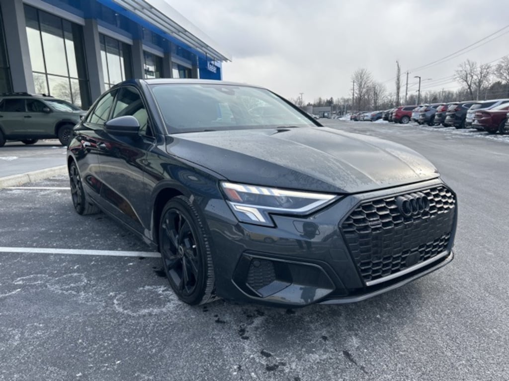 Adaptive Cruise Assist w/Lane Guidance, Agate Gray Fine Grain Birch Wood Inlay, Alarm System w/Motion Sensor, Audi Advanced Key, Audi Side Assist, Auto-Dimming Interior Mirror w/Compass, Auto-Dimming Power Folding Exterior Mirrors, Black Exterior Trim, Black Optic Sport Package, Convenience Package, LED Interior Lighting Plus Package, Memory for Driver's Seat, Park Assist, Premium Plus Package, SiriusXM w/360L, Sport Suspension (-15 mm), Wheels: 18" 5-Y-Spoke Design, Wireless Phone Charging Pad. 2023 Audi A3 40 Premium quattro Manhattan Gray Metallic